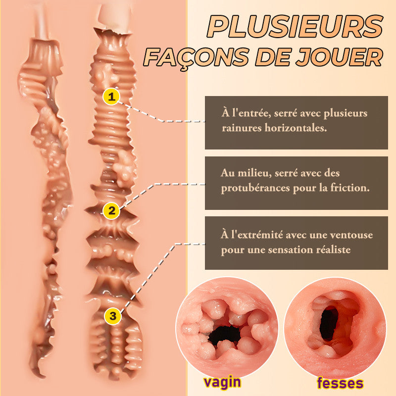 4. Ce jouet pour adultes est conçu avec deux passages vaginaux et anaux étroits et indépendants, couverts de lignes, pressant intensément votre membre