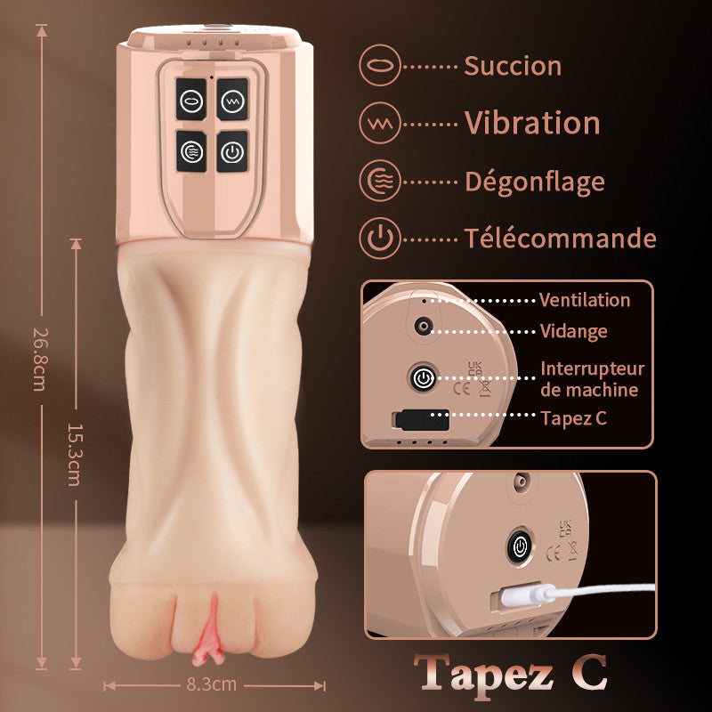 Aisia -3 en 1 Masturbateur pour sexe oral 4 aspirations 5 modes de poussée rotatifs