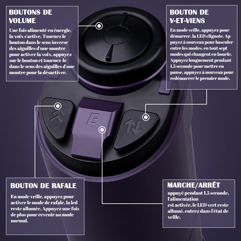 1.7 types de pistons permettent de profiter automatiquement de mouvements allant de la provocation à l'intensité.