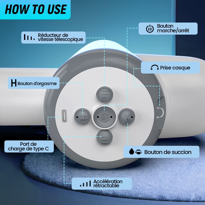 Aisia -3 en 1 Masturbateur pour sexe oral 4 aspirations 5 modes de poussée rotatifs