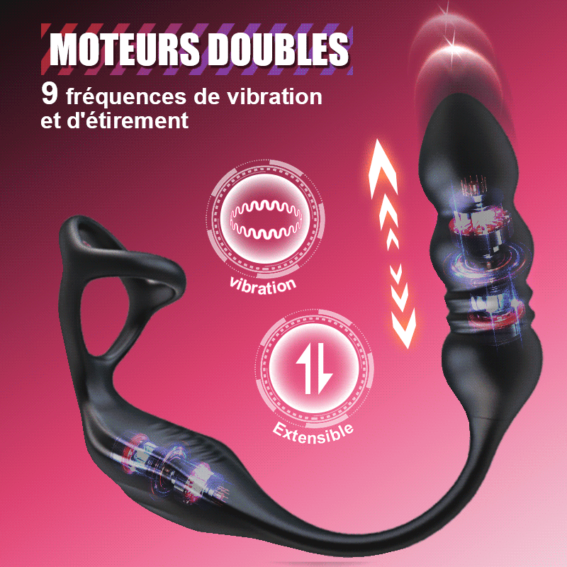 Deux moteurs puissants : Ressentez l'intensité alors qu'il cible simultanément votre point P, vos testicules et votre pénis.