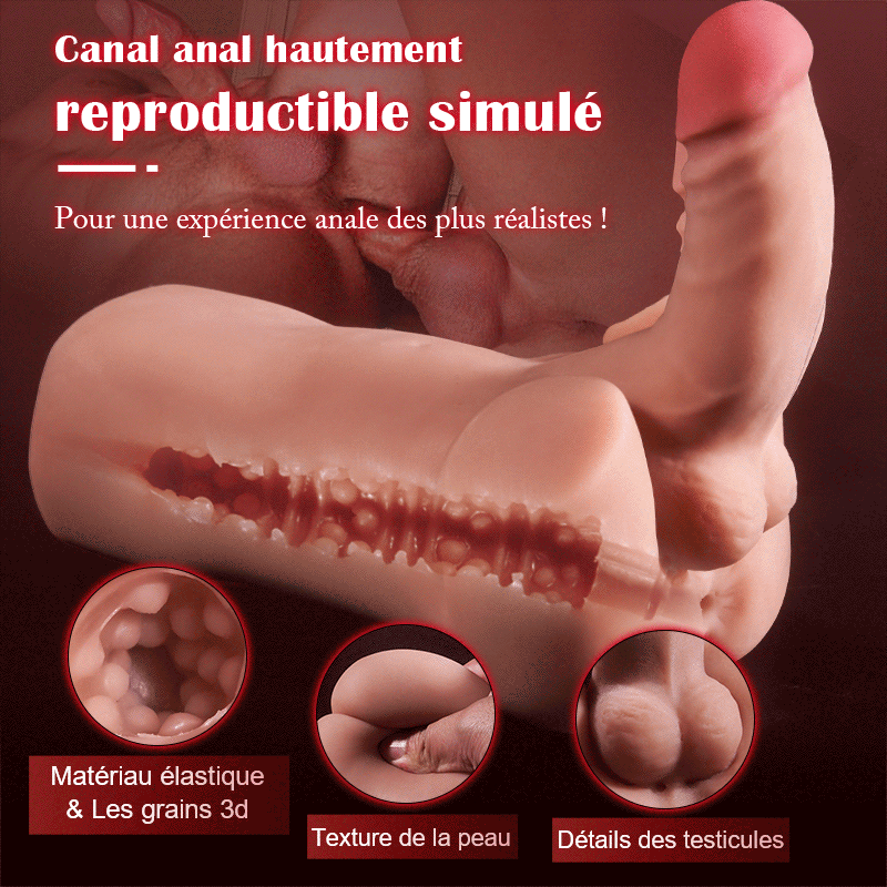 La conception du produit deux-en-un peut être utilisée comme pénis ou insérée dans l'anus pour des rapports sexuels ;